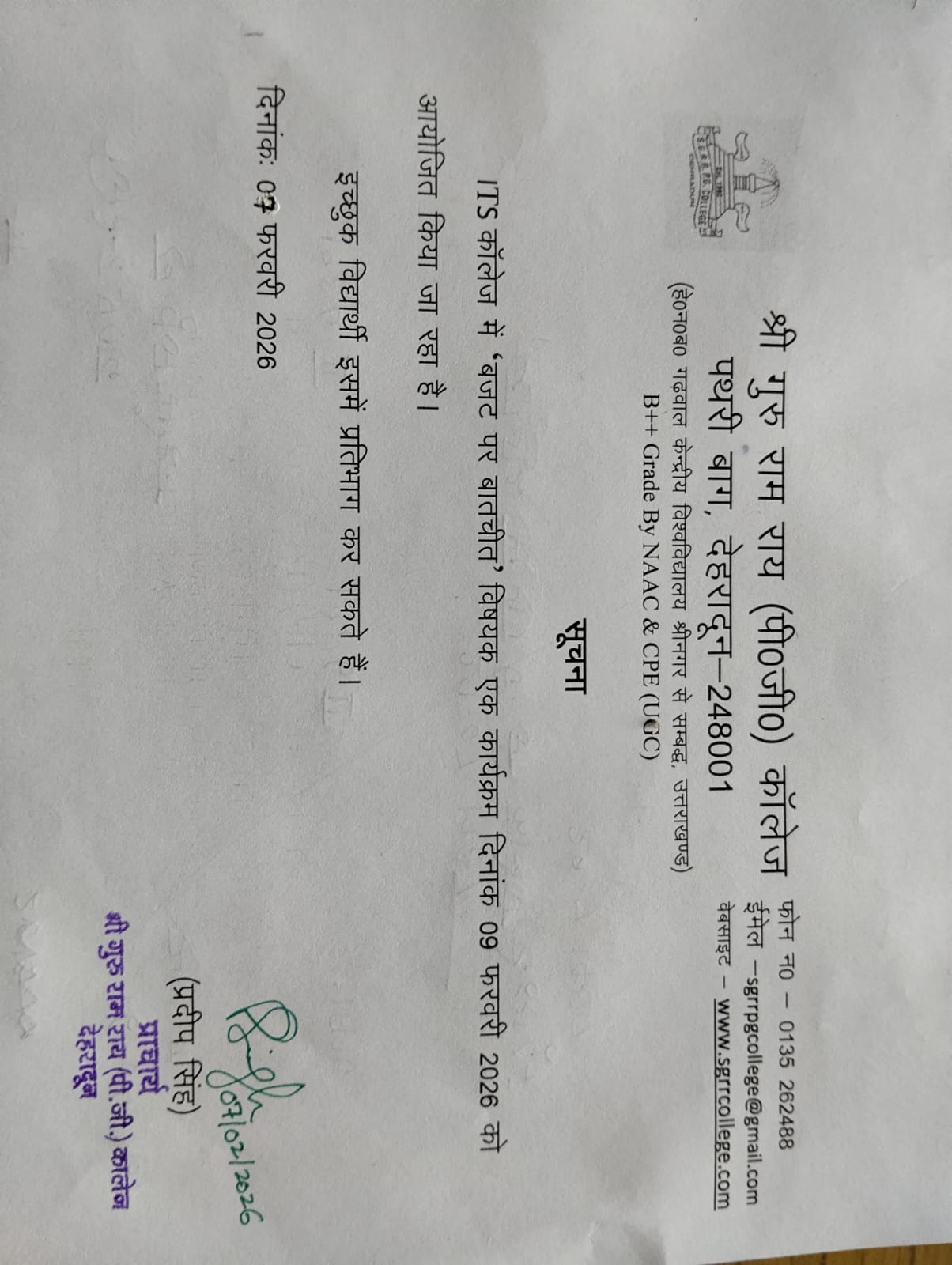 Welcome to SGRR( PG) College, Dehradun !